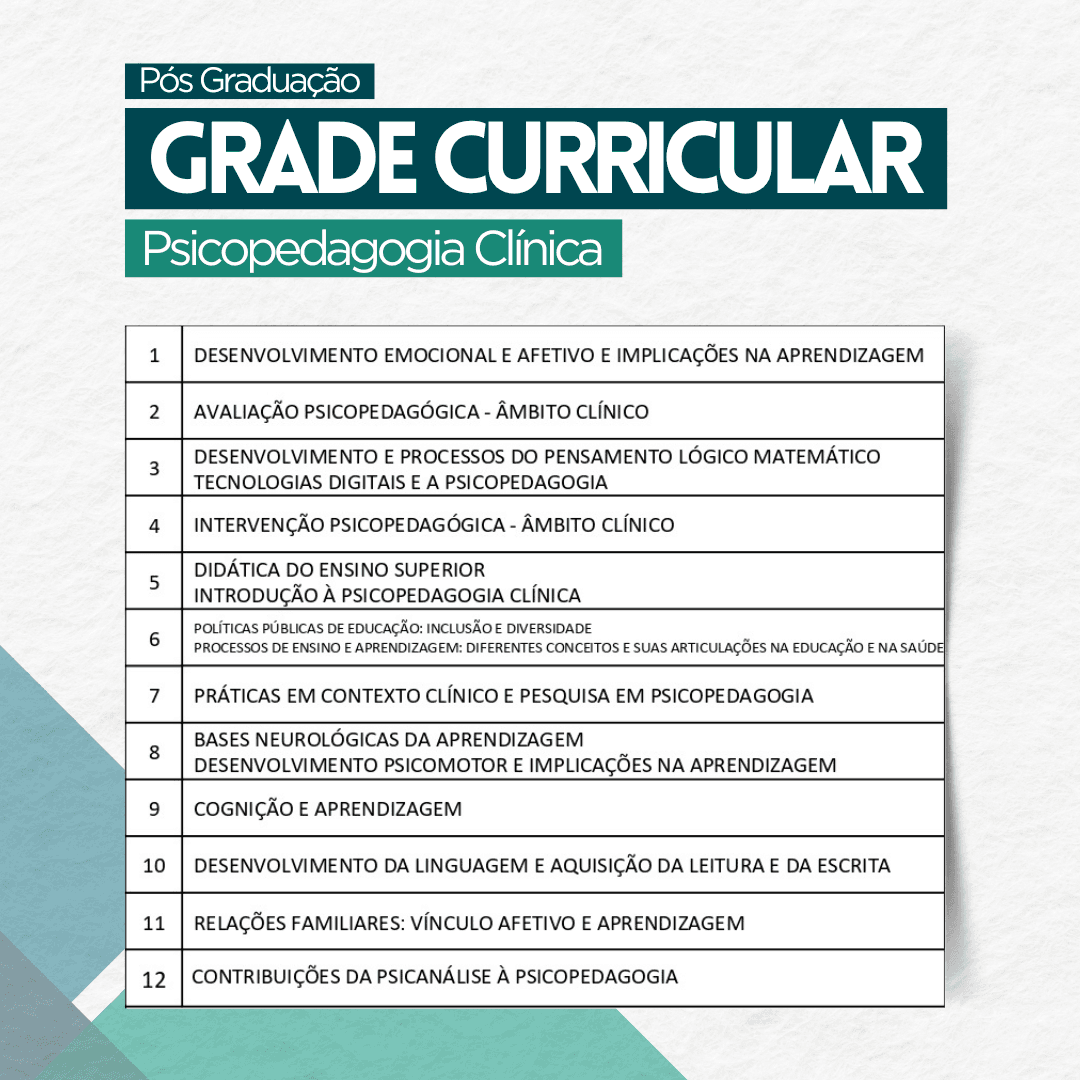 Voltado para licenciados e bacharéis, que desejam atuar como psicopedagogos clínicos, auxiliando crianças, adolescentes e até adultos com dificuldades ou transtornos de aprendizagem por meio de atendimentos personalizados.
